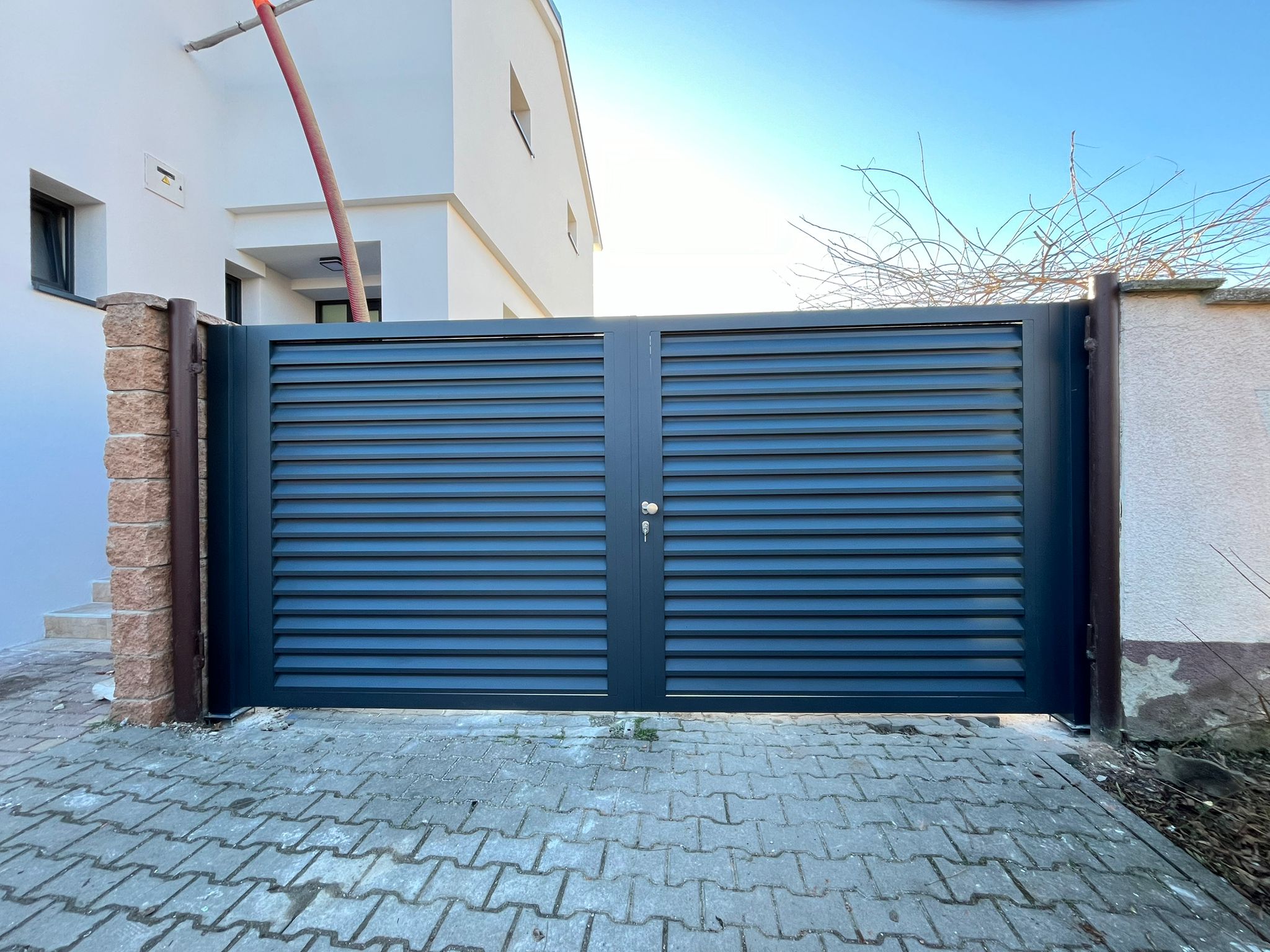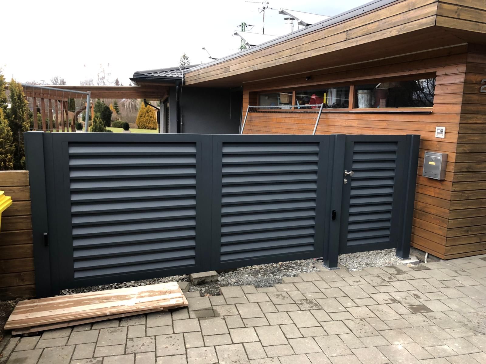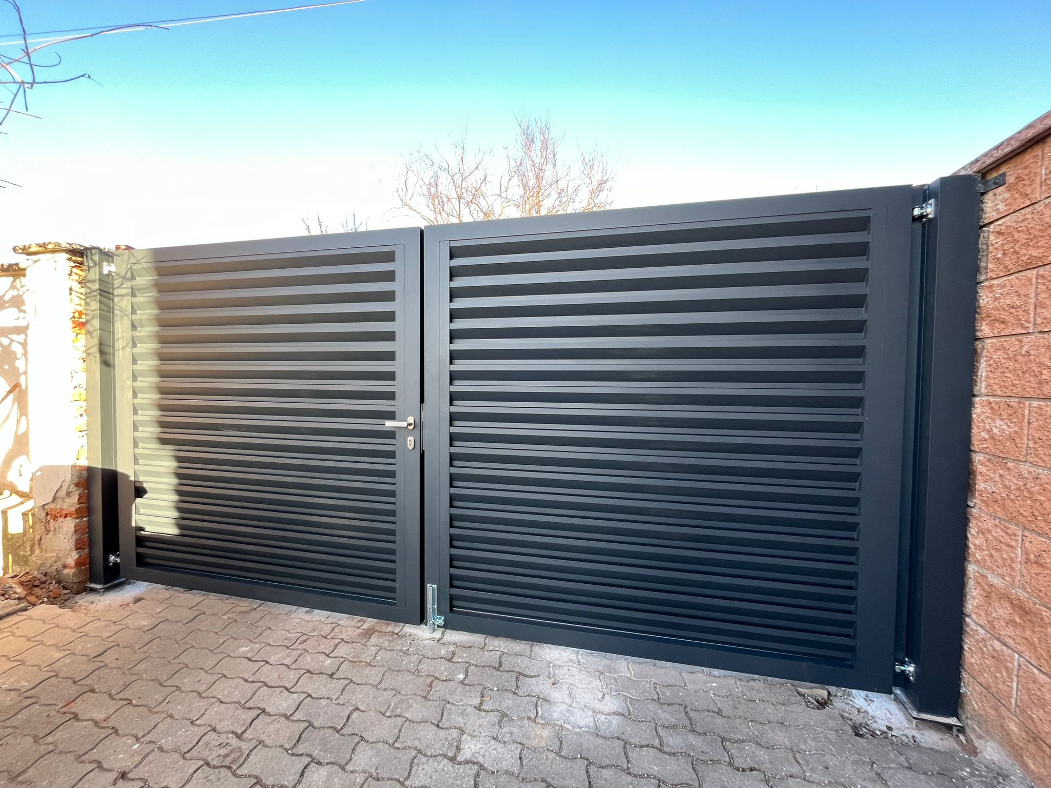 Křídlová vstupní brána s vchodovou brankou - ALUX Zeta